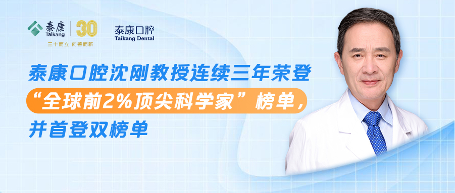 泰康口腔沈刚教授连续三年荣登“全球前2%顶尖科学家”榜单,并首登双榜单